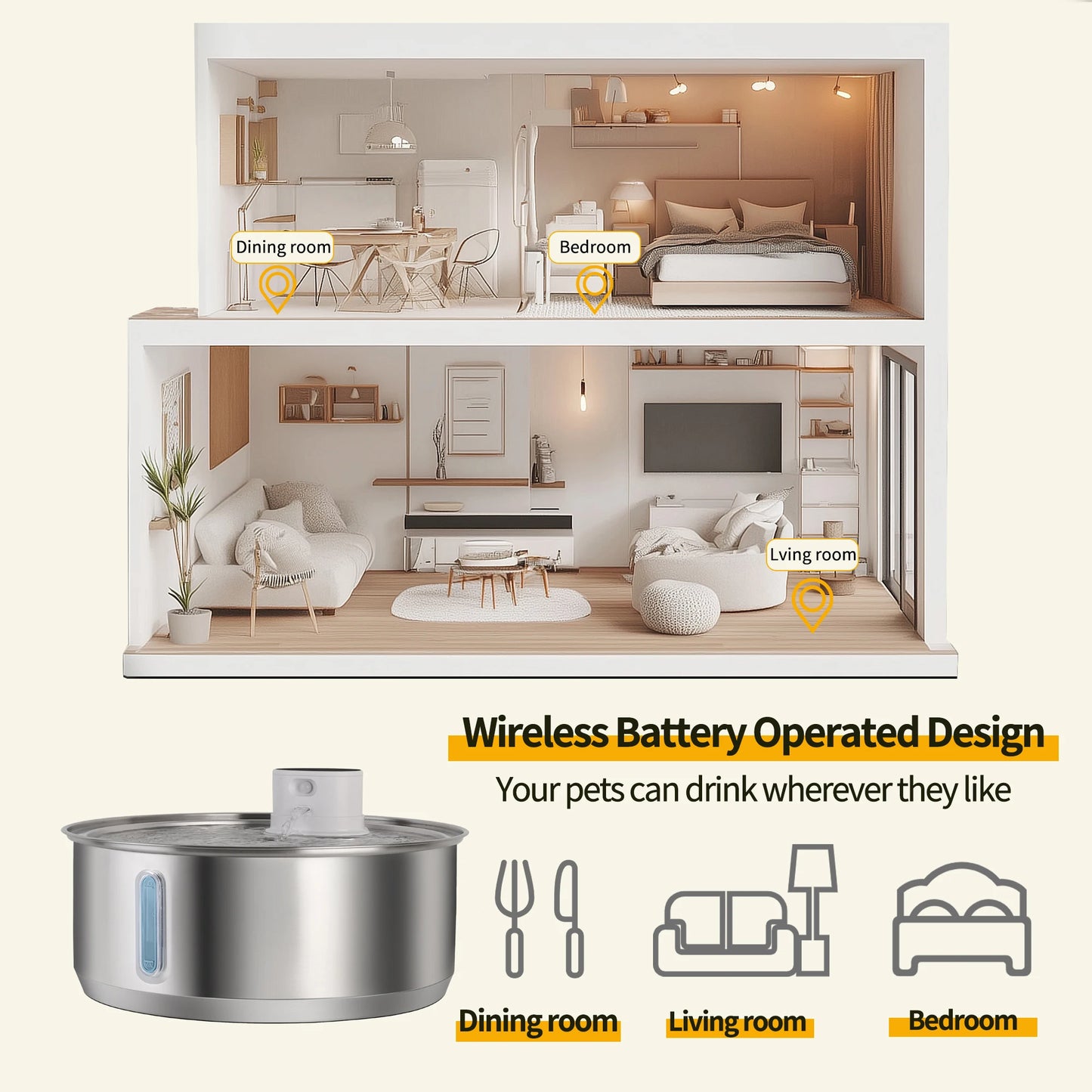 8L Wireless Stainless Steel Cat & Dog Water Fountain